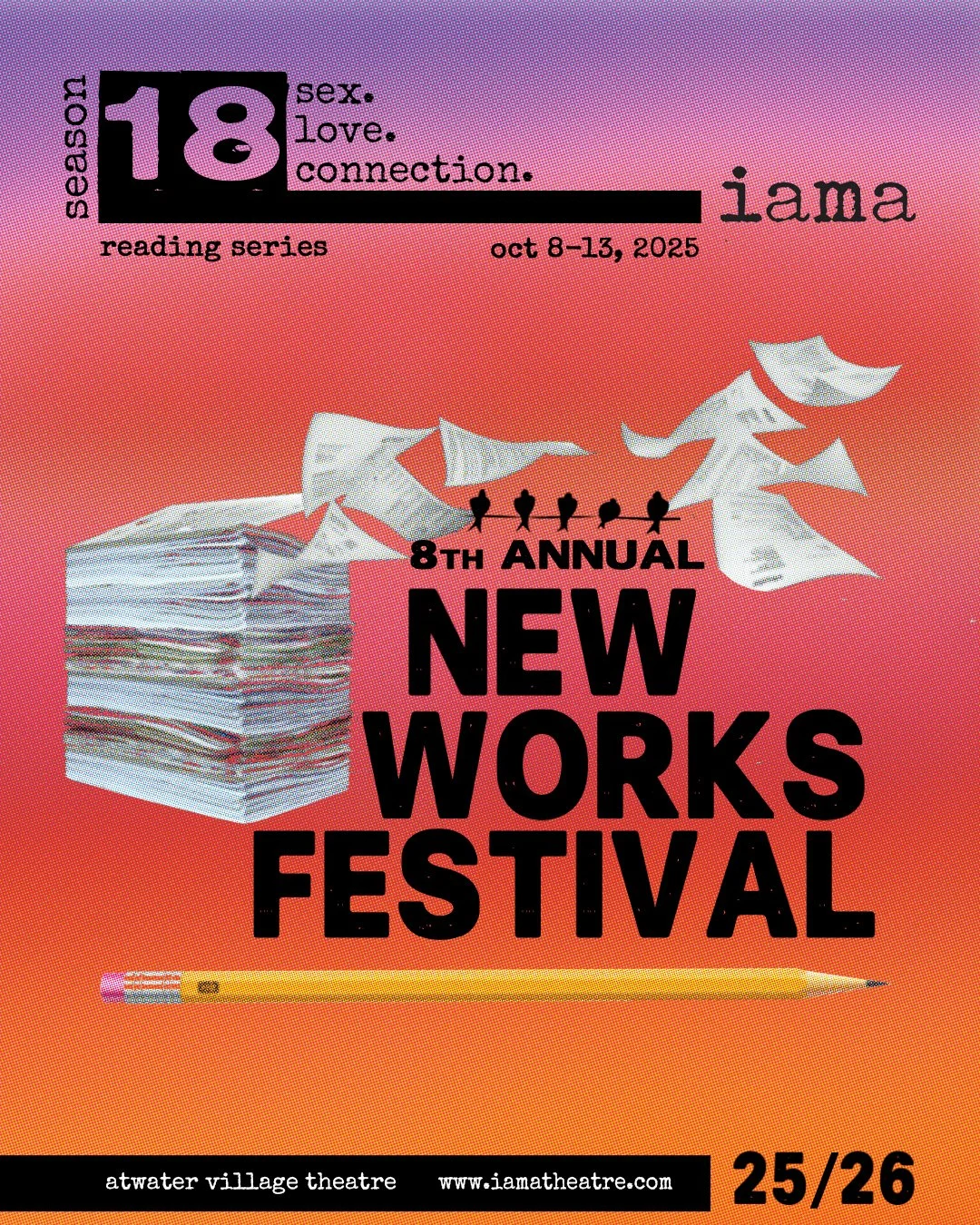 The 2025-2026 IAMA Theatre Company season will kick off with its 8th annual New Works Festival, October 9-13, 2025. IAMA’s New Works Festival offers audiences an exciting first look at future hits while giving playwrights the chance to experience public reception of their work for the first time. Since 2018, the Festival has been the starting point for new plays, which often progress to world premiere productions at IAMA, as well as on other stages nationwide.