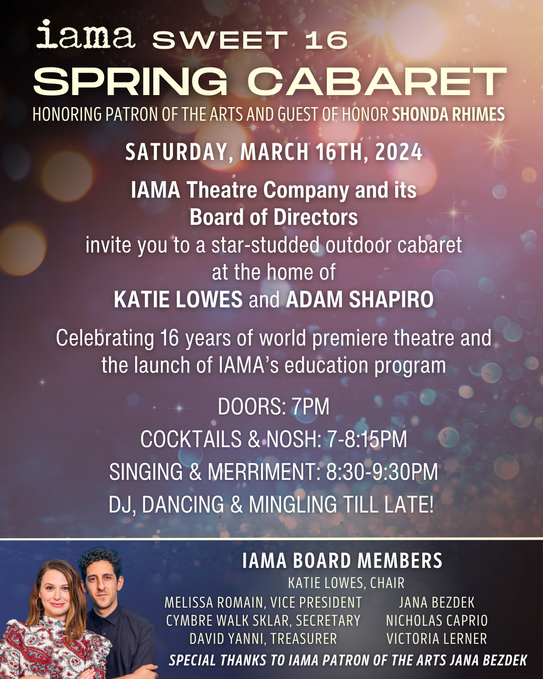 IAMA Theatre Company is a registered 501(c)(3) nonprofit organization. We rely on the generous contributions of our supporters to supplement income from ticket sales. All donations to IAMA are tax-deductible to the full extent allowed by the law.
